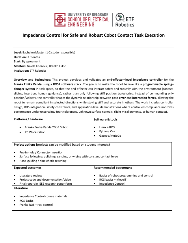 Impedance Control for Safe and Robust Cobot Contact Task Execution